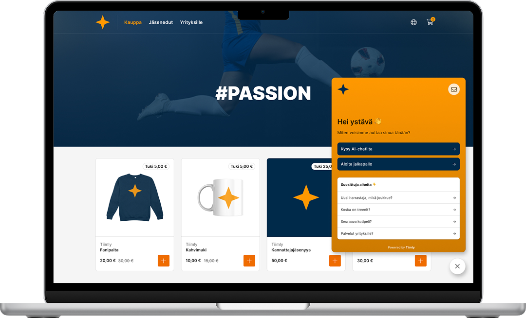 Tiimly on verkkosivuille upotettava tekoälypohjainen apuri, joka tehostaa asiakaspalvelua ja myyntiä.